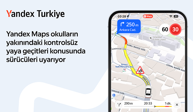 Yandex Maps, okul bölgelerindeki kontrolsüz yaya geçitleri için sürücüleri uyaracak