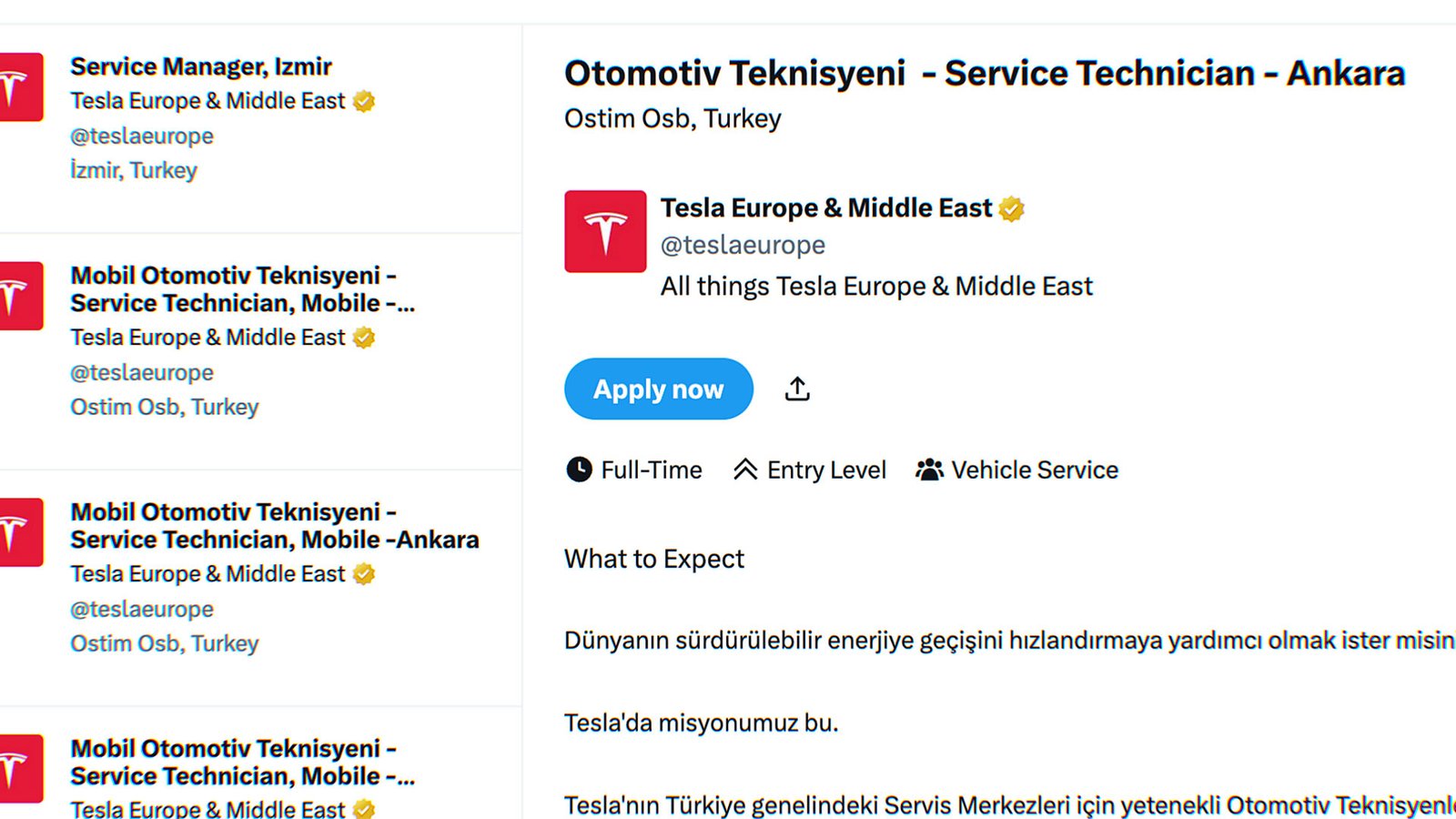 Tesla Türkiye çok sayıda yeni iş ilanı açtı; şirket özellikle otomotiv teknisyeni arıyor