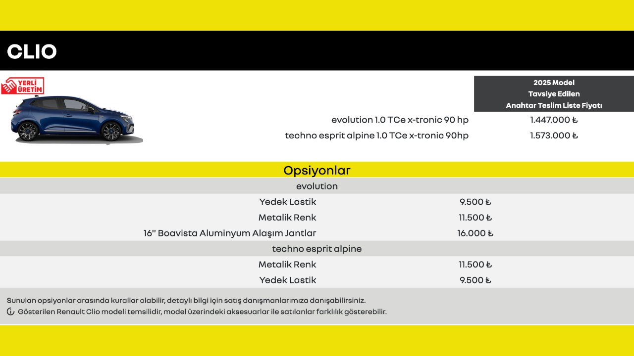 Renault Clio fiyatlarına bu sefer ufak bir indirim yapıldı