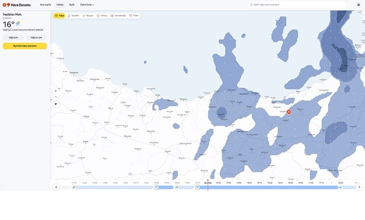 Yandex Hava Durumu, Bölge Bazlı Anlık Yağış Haritası Özelliğini Tanıttı